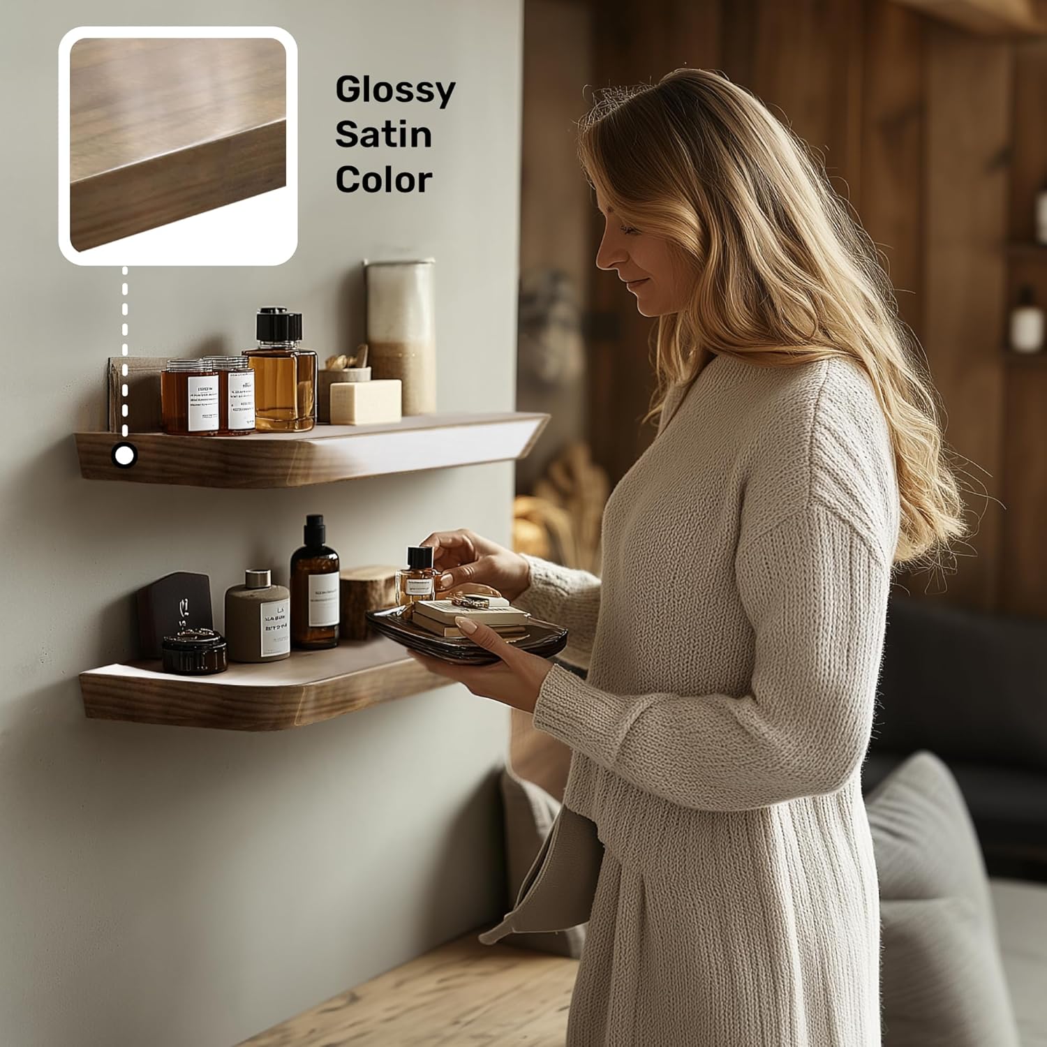 Whether styled in a minimalist, industrial, or rustic home, these real wood floating shelves bring functional elegance to any wall. Their sleek design and sturdy construction make them an essential decor upgrade for any space.